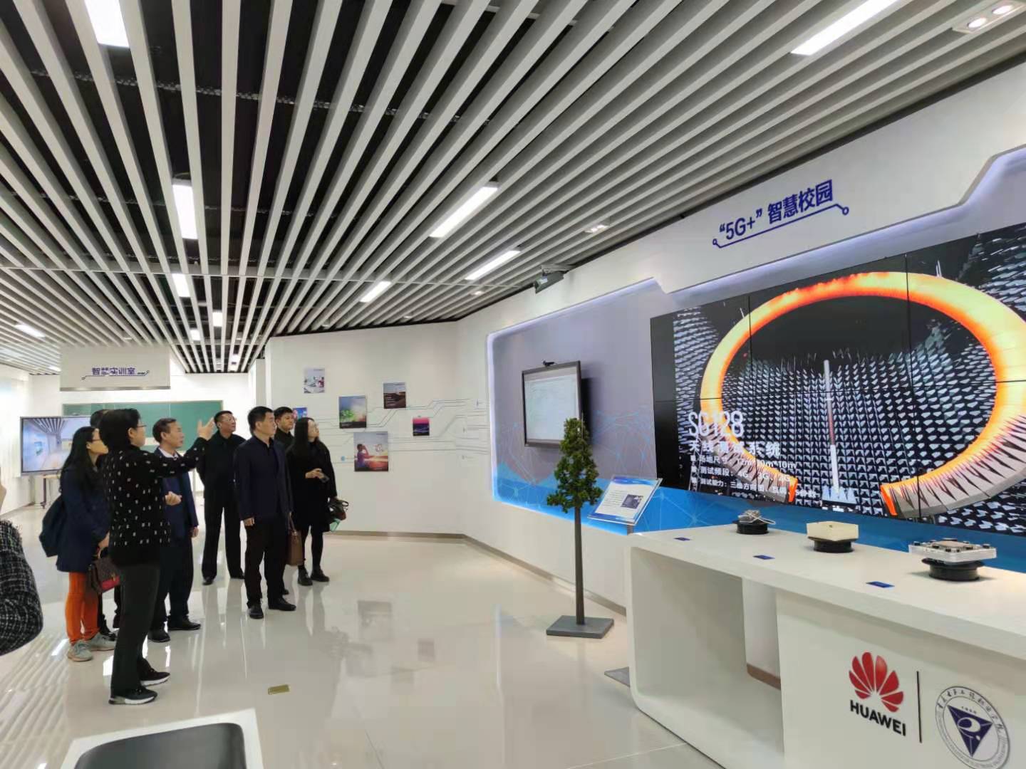 刘斌副院长一行首先参观了校史馆,然后来到通信工程学院参观了“重电-华为智慧创新中心”,考察了学院的实训室建设,最后在通信工程学院3楼会议室进行了座谈交流。