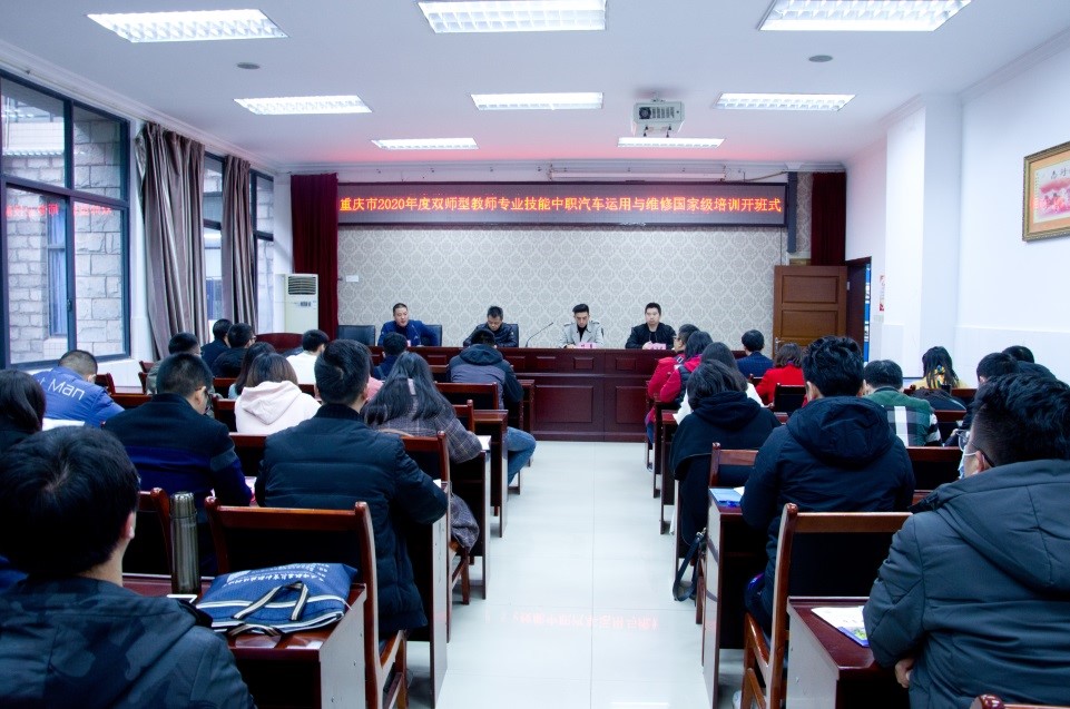 11月30日上午,重庆市2020年度职业院校教师素质提高计划专业带头人领军能力研修中职财经商贸类电子商务专业、“双师型”教师专业技能中职交通运输类汽车运用与维修专业(成渝协同)国家级培训班在我校开班,财经管理学院院长黄志平,智能制造与汽车学院副院长叶勇、智能制造与汽车学院社会服务科负责人甘守武,以及来自我市近40所中职学校的50名老师参加培训学习。