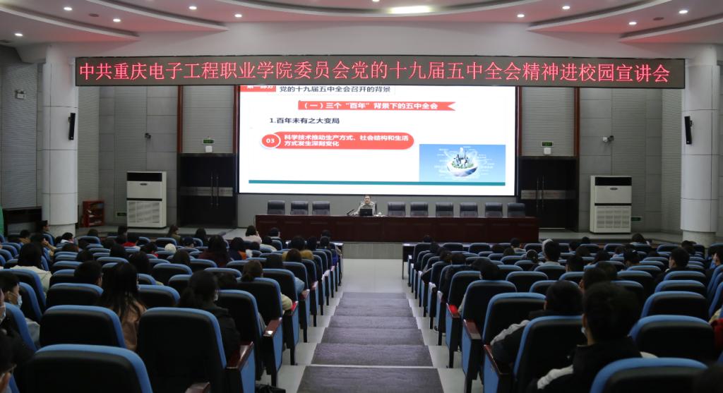现场师生认真听取报告,深入思考党的十九届五中全会精神的精神内涵。