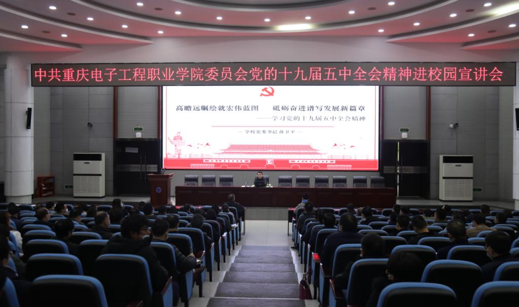 孙卫平书记以“高瞻远瞩绘就宏伟蓝图,砥砺奋进谱写发展新篇章”为题,从举世瞩目意义重大、高屋建瓴擘画蓝图、砥砺奋进续写辉煌三个方面,重点围绕《中共中央关于制定国民经济和社会发展第十四个五年规划和二〇三五年远景目标的建议》中的远景目标、指导思想、遵循原则、主要目标、重点任务、全面把握新发展阶段、深刻认识构建新发展格局七个方面结合学校实际进行了全面宣讲和深入解读。孙卫平书记在报告中指出,党的十九届五中全会是在我国将进入新发展阶段、实现中华民族伟大复兴正处在关键时期召开的一次具有全局性、历史性意义的重要会议 。党的十九届五中全会审议通过的《建议》,是开启全面建设社会主义现代化国家新征程、向第二个百年奋斗目标进军的纲领性文件。充分体现了以习近平同志为核心的党中央谋划未来的远见卓识和继往开来的历史担当,必将为实现第二个百年奋斗目标、实现中华民族伟大复兴的中国梦奠定坚实基础。