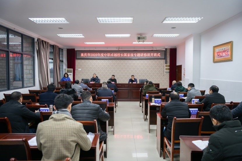 12月14日上午,重庆市2020年度中职学校卓越校长专题研修-“1+X”证书制度(成渝协同)国家级培训班”在我校南校区1-101室举行,副校长刘成俊,培训与继续教育中心主任陈志军,以及来自全市各中职学校的20名校级干部参加开班式,开班式由国培基地办副主任张亚主持。