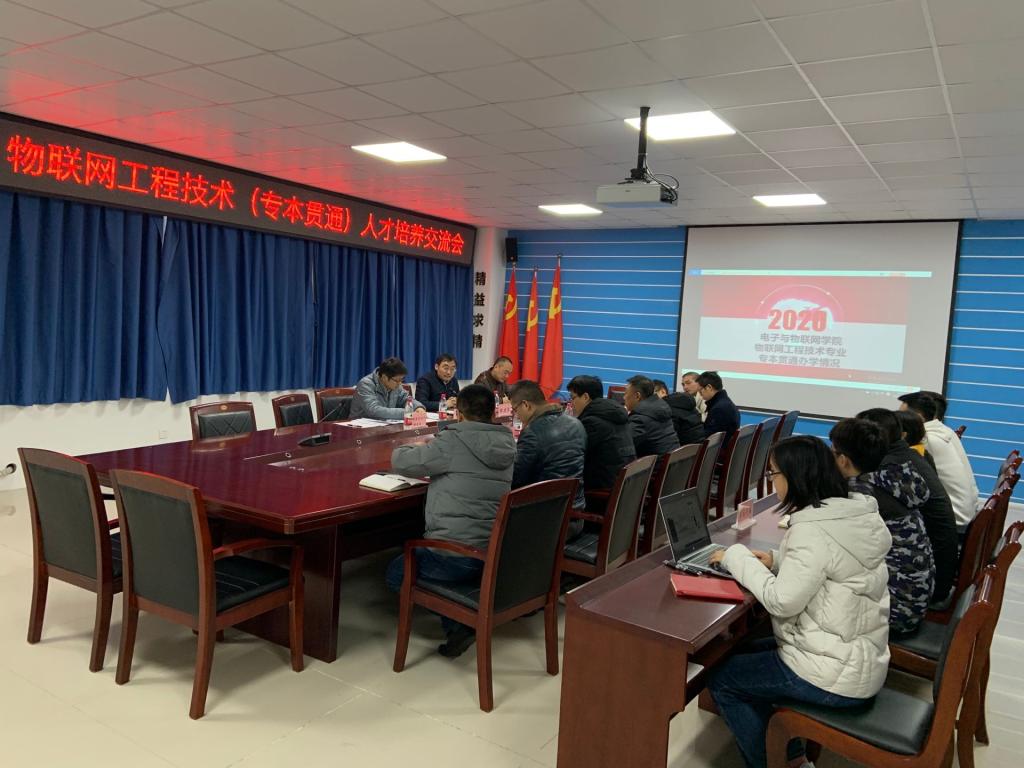 12月10日下午,为贯彻《教育部国家发展改革委财政部关于引导部分地方普通高校向应用型转变的指导意见》(教发〔2015〕7号)和《重庆市教育委员会关于开展普通本科高校与高职专科院校贯通分段培养智能产业高端技术技能型人才试点工作的通知》(渝教招发〔2017〕22号)精神,确保专本贯通“3+2”人才培养试点工作取得预期成效,培养德、智、体、美全面发展,适应物联网工程学科发展和行业需求,具备“大思政”育人格局,具备良好的自然科学基础与工程素养、专业理论基础、专业实践能力、职业综合能力与创新创业能力的高级应用型工程技术人才,电子与物联网学院接待了来访的重庆科技学院智能技术与工程学院都进学书记一行,共同开展物联网工程技术(专本贯通)专业人才培养交流会。重庆科技学院智能技术与工程学院党总支都进学书记、院长助理周伟博士等一行3人,电子与物联网学院党总支书记张红斌教授、院长陈良教授、信息工程系主任徐小辉教授、物联网应用系主任徐欣副教授以及相关专业主任、骨干教师、专本贯通班学生代表参加了此次交流会。