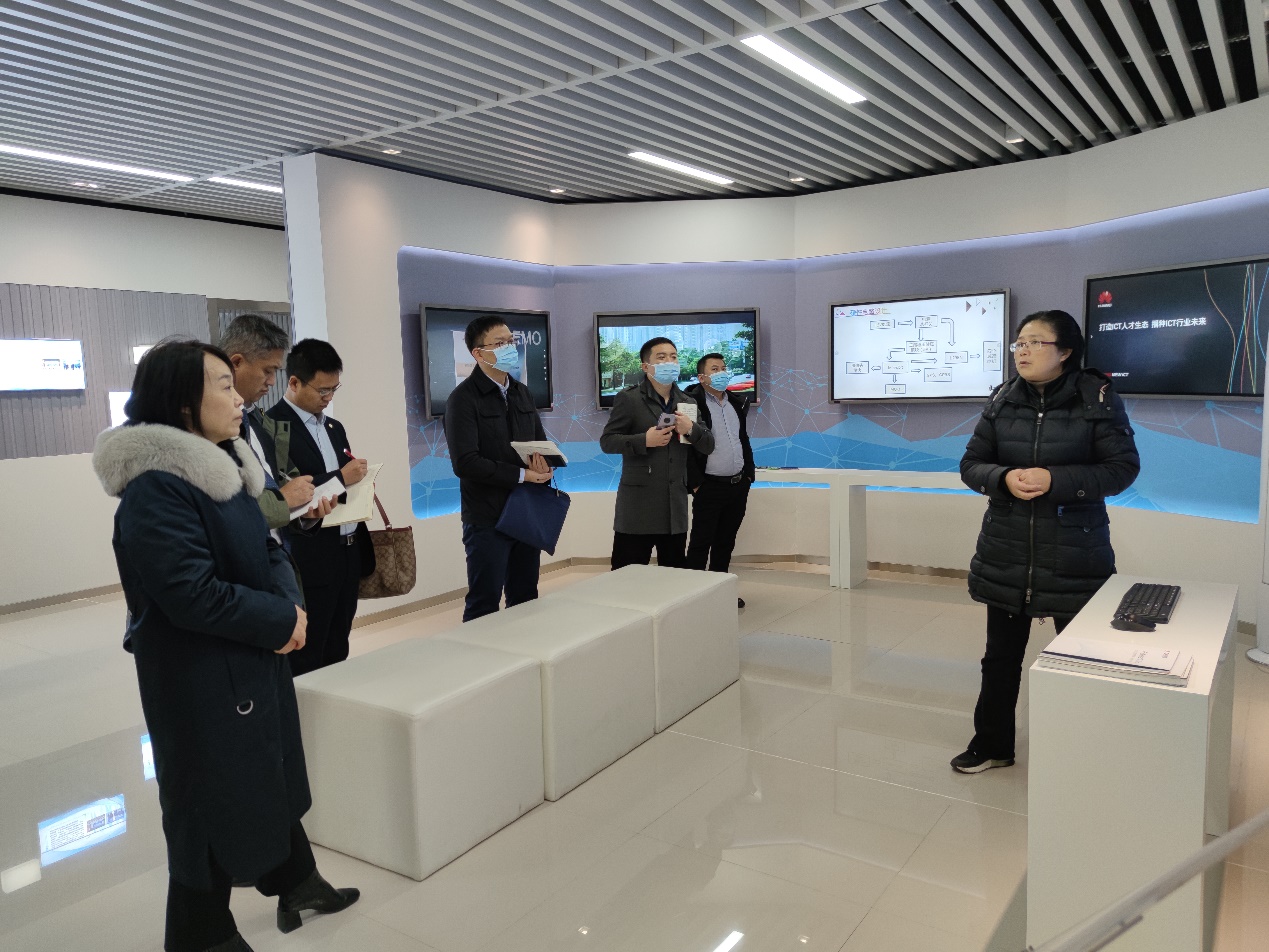刘成俊副校长首先代表我校对廊坊职业技术学院领导、老师的莅临表示欢迎,接着张昕副院长一行参观了通信工程学院 “重电-华为智慧创新中心”和通信工程学院华为共建实训基地,对我校与华为开展校企合作的情况产生了浓厚兴趣。座谈中,两校就产教融合与校企合作、专业建设与人才培养、ICT学院建设模式和“1+X”证书等方面进行了深入交流。