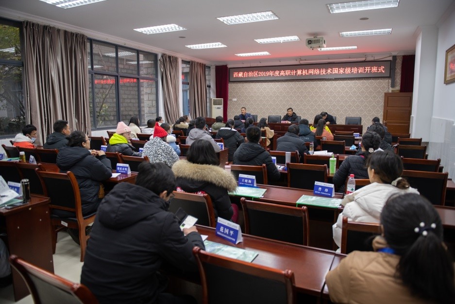 12月28日上午,由西藏自治区教育厅主办,我校国培基地承办的西藏自治区2019年度创新项目中职思政教师国家级培训和西藏自治区2019年度“双师型”教师专业技能高职计算机网络技术国家级培训在我校南校区1-101室举行,我校人工智能与大数据学院党总支书记吴焱岷,重庆电子工程职业学院“双高”办副主任何欢,以及来自西藏自治区各中高职院校的40名学员参加开班式,开班式由国培基地办副主任张亚主持。