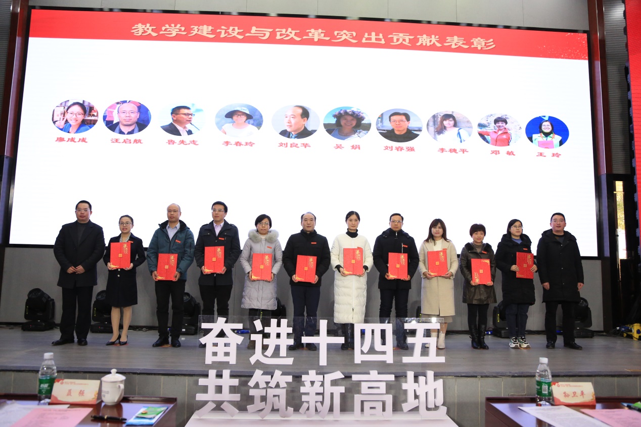 龚小勇副书记和黄爱明副校长为教学建设与改革突出贡献奖获得者颁奖