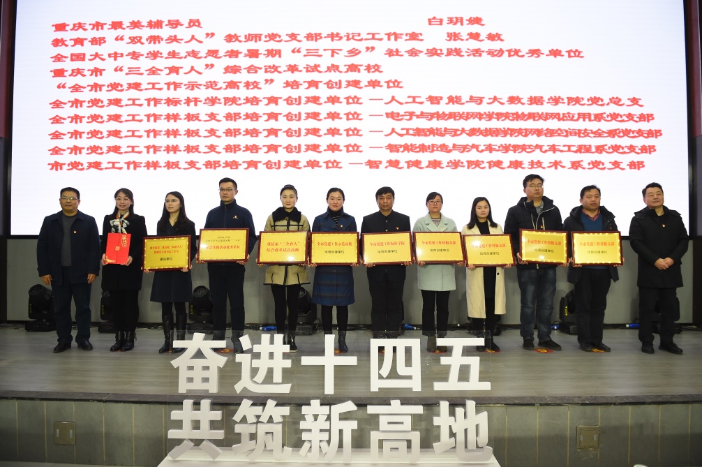 新年伊始,万象更新。2021年1月13日上午,学校在博远厅召开2020年度“双高”建设总结表彰暨科技创新大会。校党委书记孙卫平,校长聂强,党委副书记龚小勇,副校长幸昆仑、刘成俊、谢义华、冉学农、黄爱明,党委宣传部部长疏勤,校友企业代表重庆市华雄实业集团有限公司副总经理付强先生,华雄集团总经理助理李丹女士出席会议,二级部门处科级代表、受表彰的教师代表及各二级学院师生代表参加会议。
