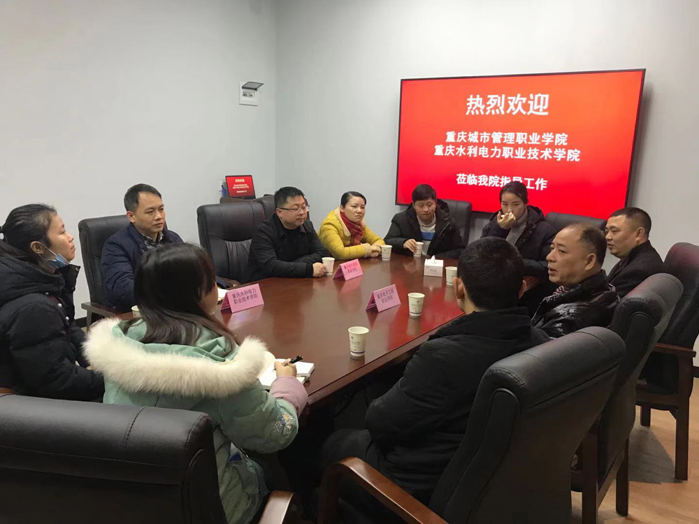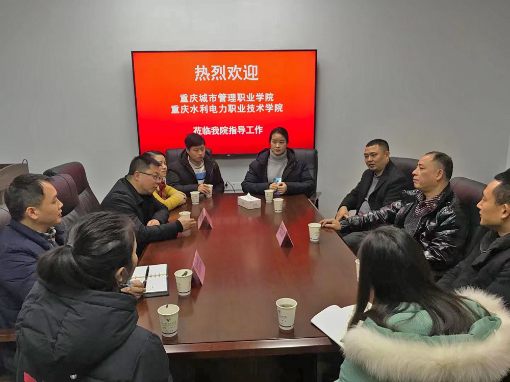 2021年1月21日下午,重庆城市管理职业学院合作发展处江柯处长、重庆水利电力职业技术学院教务处邓怀勇副处长一行8人,前来我校就校企合作,产业学院建设事宜进行交流座谈。