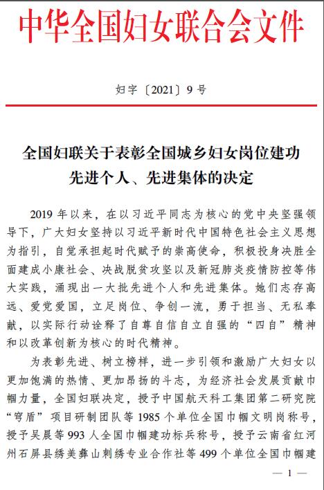 在三八国际劳动妇女节到来之际,全国妇联表彰了一批在决胜全面建成小康社会、决战脱贫攻坚以及新冠肺炎疫情防控中,为国家经济社会发展贡献巾帼力量的先进集体和个人,其中,作为重庆市高校唯一获此殊荣的学校,我校财务资产处(扶贫办)被全国妇女联合会授予“全国巾帼文明岗”荣誉称号。