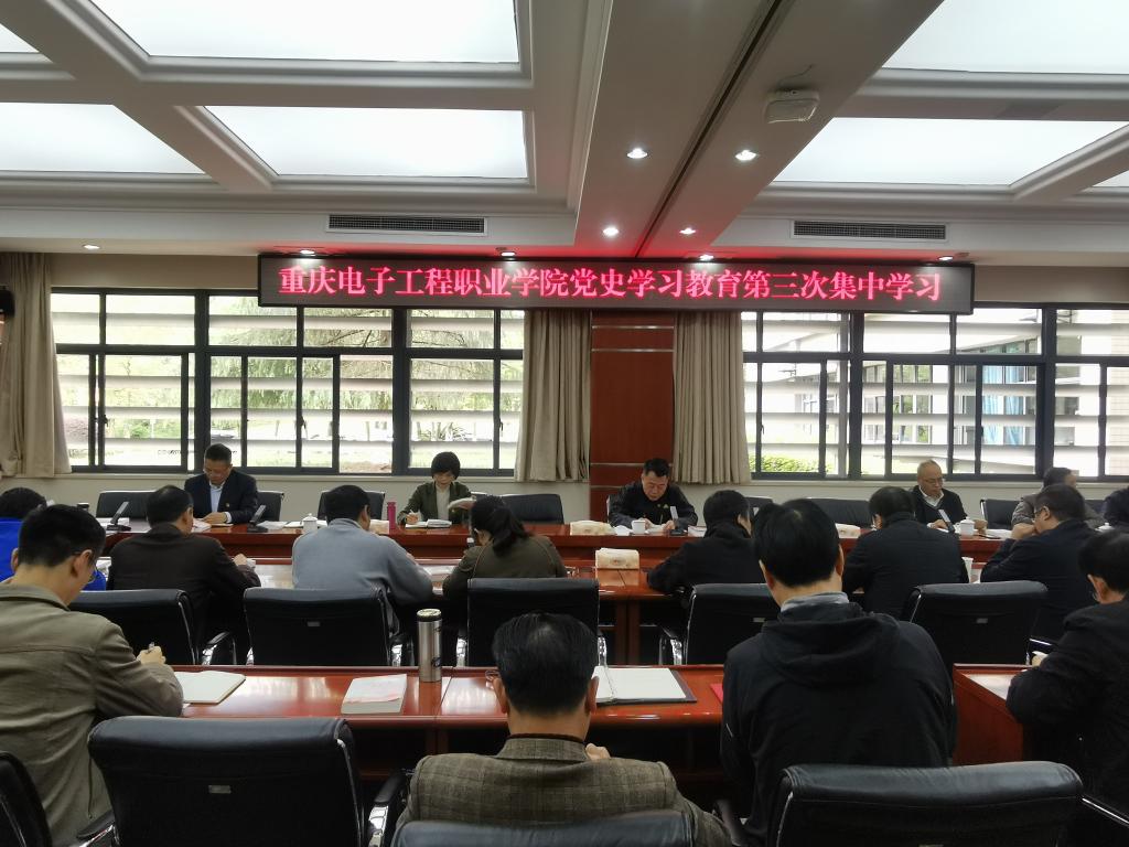 2021年4月9日,重庆电子工程职业学院举行党史学习教育第三次集中研讨学习。会议原原本本学习了习近平《论中国共产党历史》《习近平新时代中国特色社会主义思想学习问答》相关篇章,研讨学习了习近平总书记在福建考察期间重要讲话精神并跟进学习中央、市委最新指示精神。校级领导班子成员、处级干部(含组织员、检察员)参加会议,会议由校党委书记孙卫平同志主持。