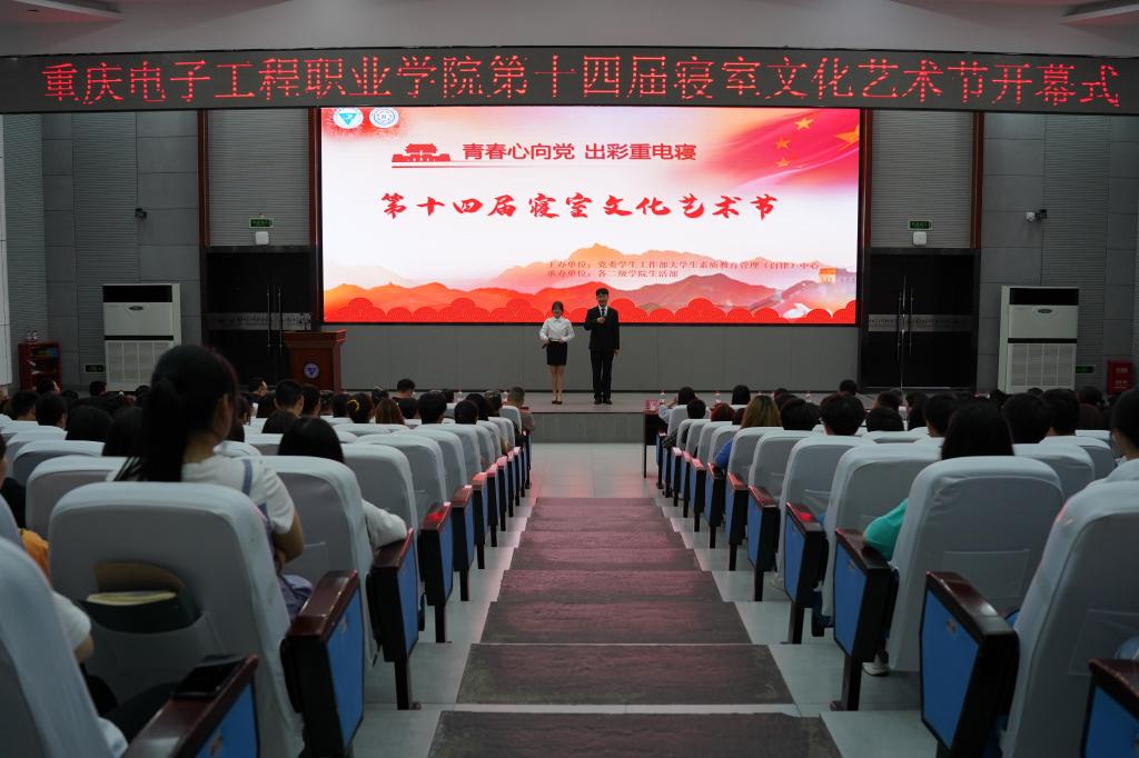 为进一步丰富广大学生的寝室文化生活,增进同学之间的交流,美化学生生活环境,创建一个安全、文明、卫生、和谐的校园,重庆电子工程职业学院第十四届寝室文化艺术节开幕式于2021年5月8日12:40在博远厅举行。到场的嘉宾有冉学农副校长、何光明部长、蒋斌副部长以及各二级学院党总支书记、团总支书记和学管科科长们。