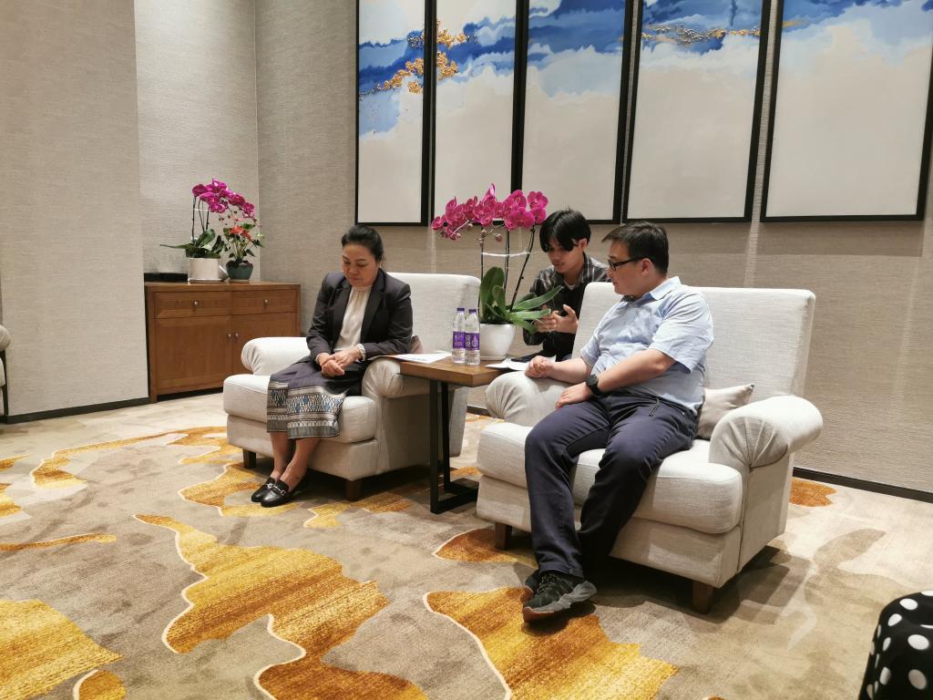我校老挝留学生沙晚同作为老中经贸促进会优秀实习生参加了工作汇报会,并在汇报会中担任翻译工作。老挝驻中国大使馆的文化教育参赞和使馆秘书高度赞扬我校培养的老挝留学生,并鼓励他能够在中国继续深造学习。