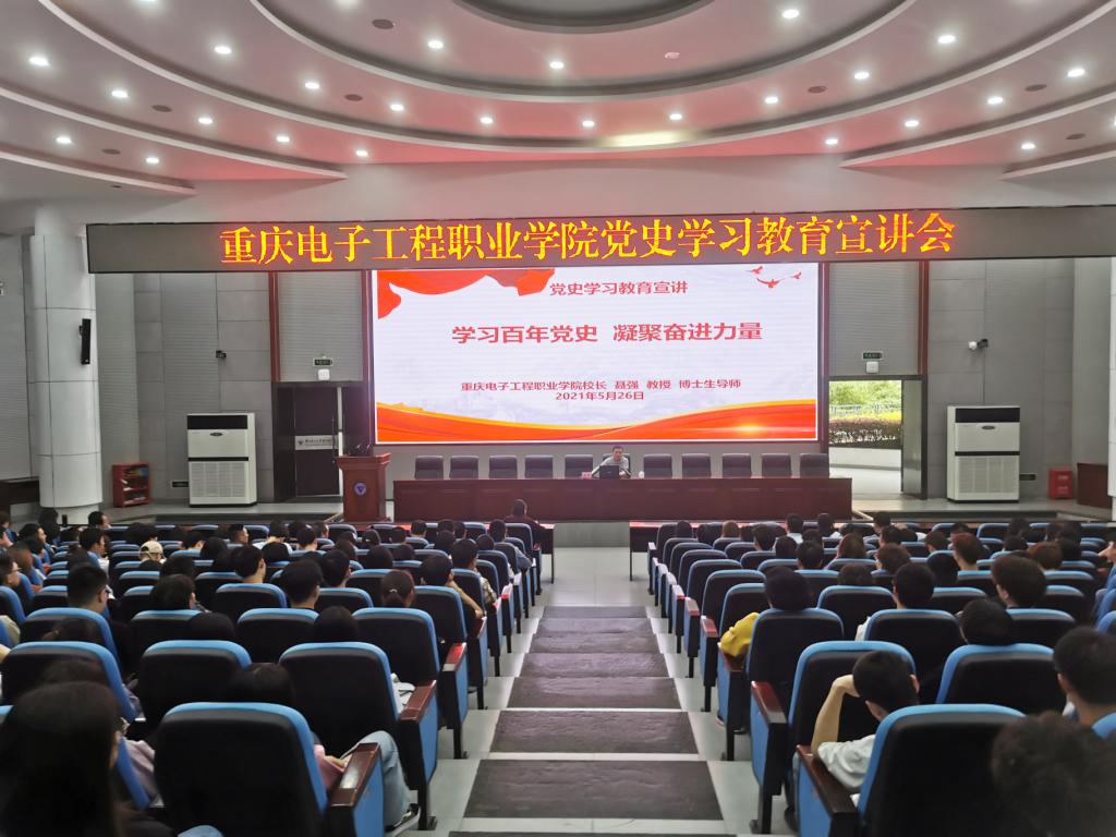5月26日上午,我校举行党史学习教育宣讲报告会。市委教育工委党史学习教育进校园宣讲队成员、学校党委副书记、校长聂强教授作宣讲报告。人力资源处处长廖世萍主持报告会。学校二级学院教研室主任(系主任)、人力资源处全体党员、通信学院师生代表等300人参加报告会。