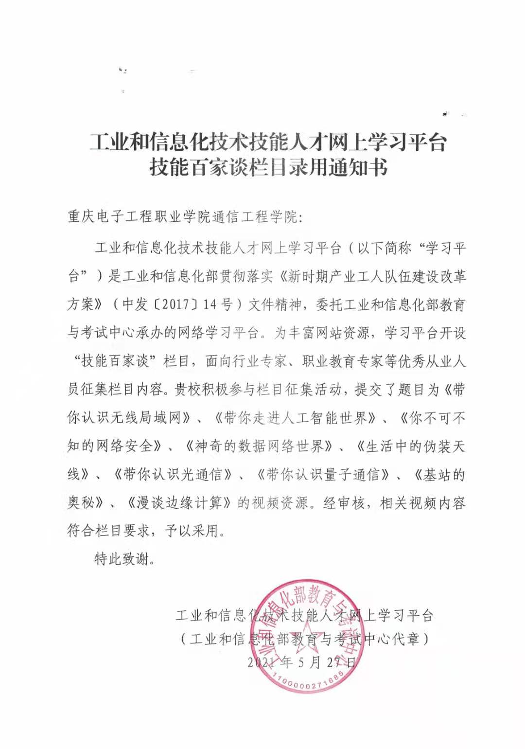 我校通信工程学院长期注重科普工作,学院领导专门组建科普团队,开展科普视频制作、科普宣讲进校园、社区等活动。近日,通信工程学院科普团队编制、出品的《漫谈边缘计算》、《基站的奥秘》等9个科普视频资源,被工业和信息化技术技能人才网上学习平台采用并向全国推广。