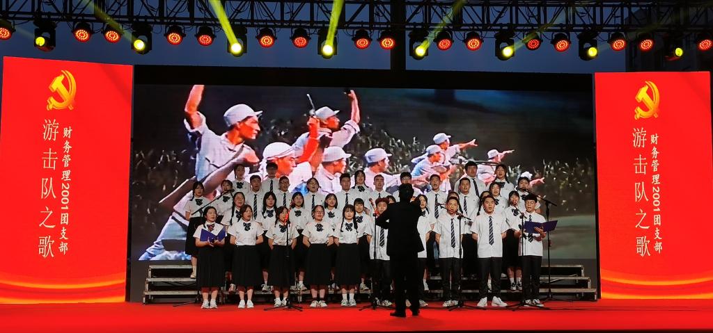 音乐会在曲目《国家》中拉开序幕,同学们用真挚生动的情感唱出了中华儿女爱党爱国的心声,深情的旋律将观众迅速带进热烈的氛围;曲目《黄河大合唱》,同学们用饱满的热情和嘹亮的歌声讴歌中国共产党带领中国人民取得的辉煌成就,将音乐会推向高潮;青年教师团支部满怀深情演唱歌曲《追寻》,场下掌声不断。一曲红歌就是一段鲜红的历史,在新时代重温、传唱红色经典歌曲,不仅是革命追忆、红色传承,更是坚定理想信念、厚植家国情怀。最终,电商1902团支部演唱曲目《黄河大合唱》、 财管2001团支部演唱曲目《游击队之歌》摘得桂冠,荣获一等奖。