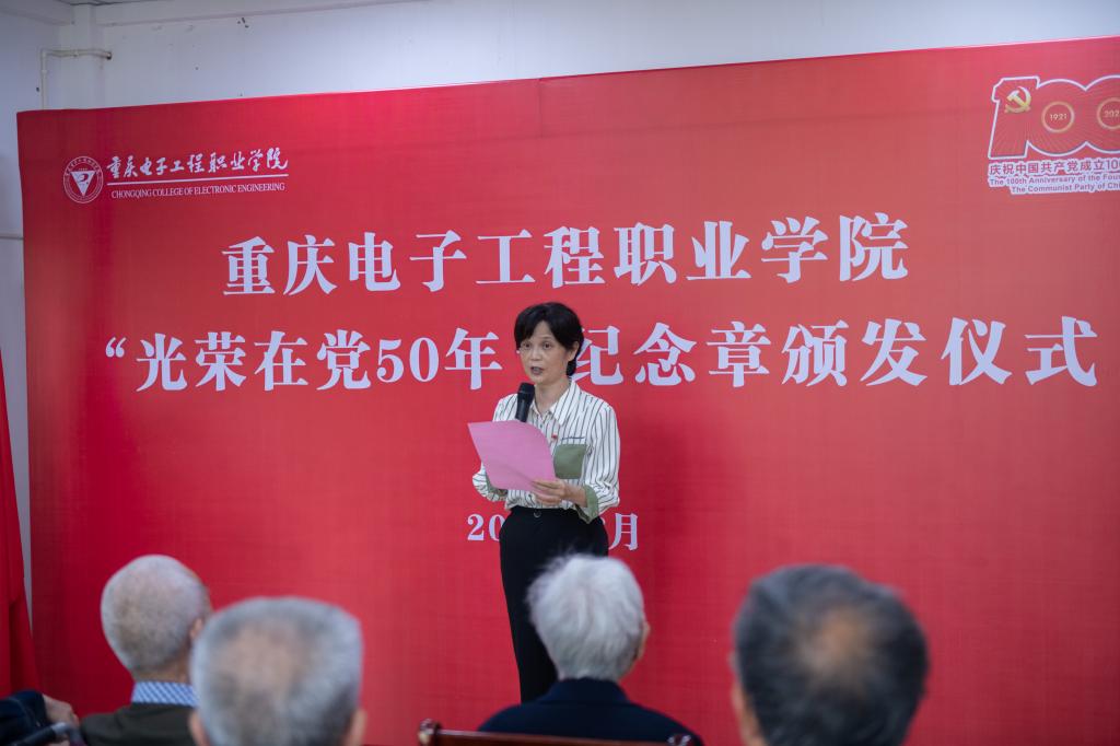 陈丽书记宣读了重庆电子工程职业学院“光荣在党50年”纪念章获得者名单。