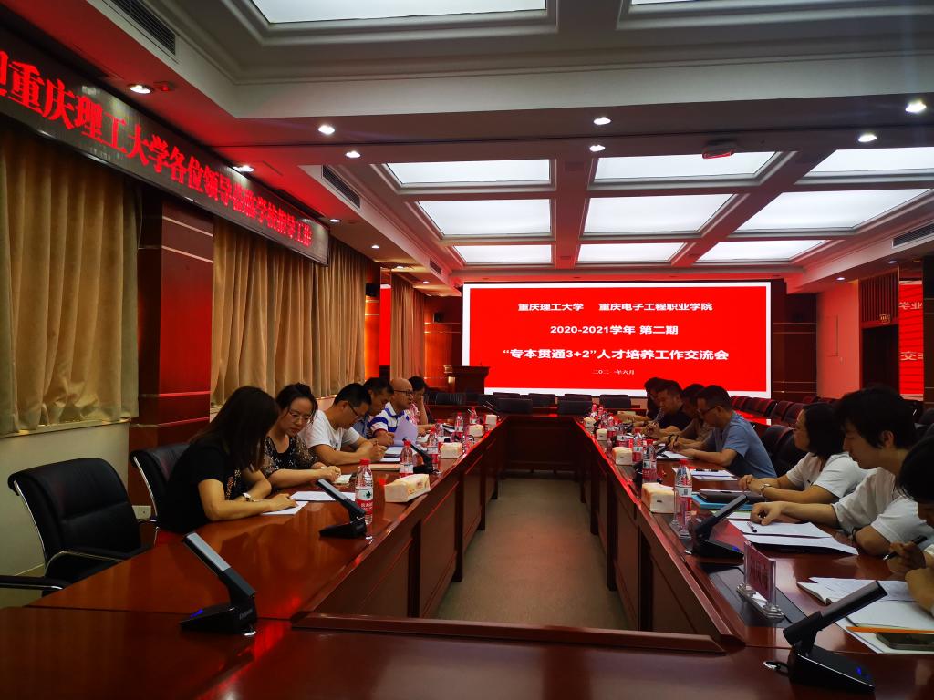 2021年6月23日下午,重庆理工大学—重庆电子工程职业学院2020-2021学年第二学期“专本贯通3+2”人才培养工作交流会在我校博润厅顺利召开。重庆理工大学应用技术学院教务部主任魏光明、学办主任谢博以及本科班导师和辅导员代表,重庆电子工程职业学院教务处副处长赖先志、“专本贯通3+2”负责人黄晓君,人工智能与大数据学院党总支书记吴焱岷、教务科科长刘忠利、学管科科长白锐、2018级“专本贯通3+2”班学业导师陈学平、秦毅,班级辅导员(班主任)老师刘凤梅、刘思伶参加会议。
