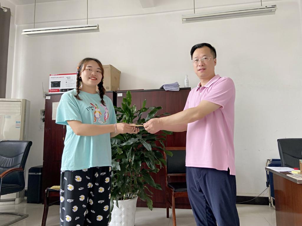 据悉,学校各党总支(机关党委)也在积极开展“七·一”走访慰问活动。财经管理学院党总支书记谢鑫代表学院党总支向生活困难学生党员刘井兵送去慰问金,并积极了解学生毕业后的就业去向。学生党员刘井兵表示,感恩党的关怀与关爱,毕业后也将继续为学校、学院贡献力量。