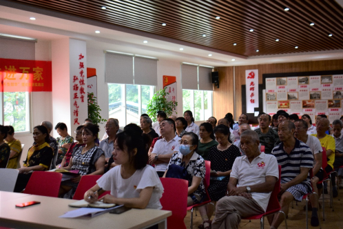 百年征程波澜壮阔,百年初心历久弥坚。为深入学习贯彻习近平总书记“七一”重要讲话精神,聚焦党史学习教育,让红色基因融入青春血脉。2021年7月15日上午,重庆电子工程职业学院智慧健康学院“青春向党 不负韶华”理论宣讲实践团指导教师、马克思主义学院教师左露为高店子社区全体党员上“百年峥嵘 初心始终”党史专题党课。左露老师从“中华民族的伟大复兴与中国共产党的发展”、“改革开放的伟大实践和新时代的新征程”两个板块对百年党史进行了回顾。“没有共产党就没有新中国”,中国共产党带领中华民族站起来、富起来、强起来,全面建成小康社会,实现了第一个百年奋斗目标。左露老师以一段影片作为结束,影片中总结了我国近年来取得的伟大成就,揭示了中国共产党在百年发展过程中,始终坚持为中国人民谋幸福、为中华民族谋复兴的初心和使命。