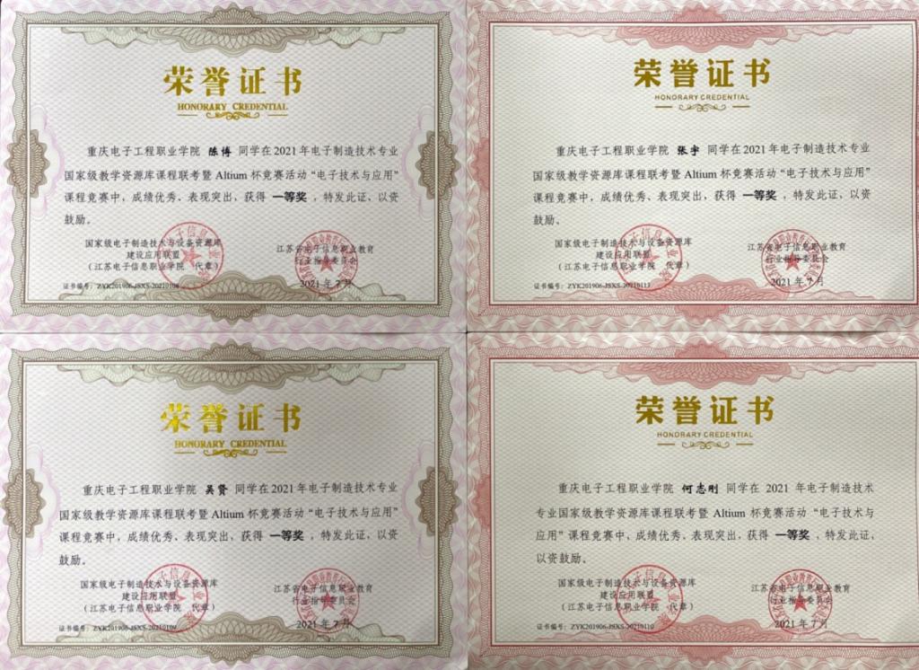 本次竞赛共有来自江苏电子信息职业学院、苏州信息职业技术学院、重庆航天职业技术学院等3000多名学生参加。以智慧职教为平台,以国家级电子制造技术专业资源库标准化课程资源为基准,以“理论知识+实践操作” 形式组织内容,以院校“联盟+联考”方式在线评价,选拔出5%的优秀学生颁发荣誉证书和Altium公司赞助的奖品。同时,基于平台的大数据分析功能,为参赛院校提供详细的“院校联考课程成绩分析报告”。