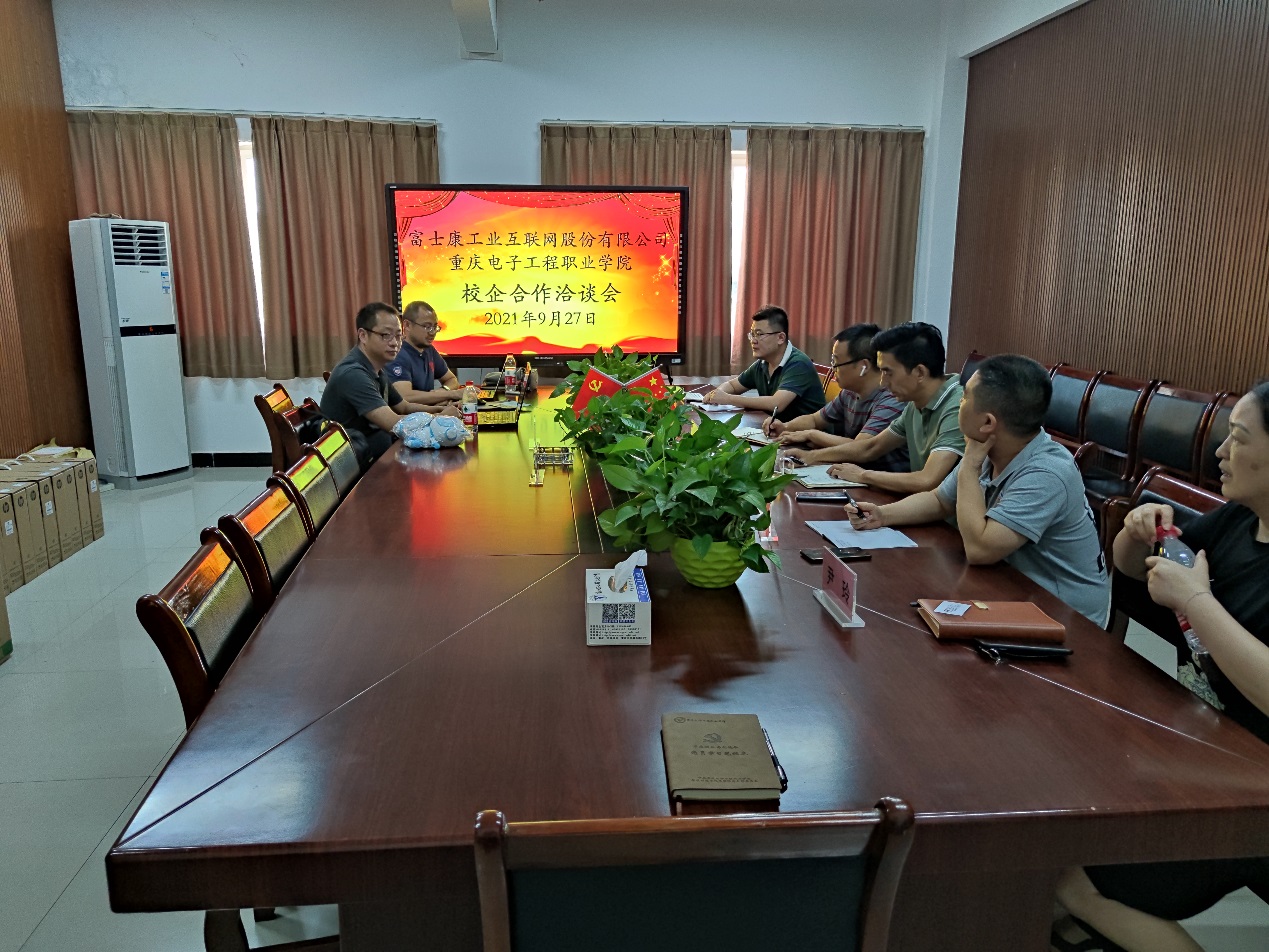 为进一步顺应智能制造新形势的发展要求,对接产业发展需求,加强校企之间的融合交流,提升人才培养质量。2021年9月27日下午,富士康工业互联网股份有限公司教育资源拓展中心总监叶蔚、精益智动总监曹昌海一行2人来智能制造与汽车学院进行校企合作洽谈交流。智能制造与汽车学院书记张进春、副院长叶勇、社会服务科负责人甘守武,项目办负责人李成、自动化系书记尹玲参与洽谈会。副院长叶勇代表学院对富士康工业互联网股份有限公司领导一行的到来表示欢迎。
