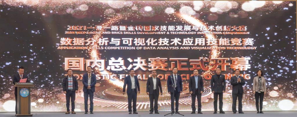 最后,各嘉宾领导上台,共同宣布一带一路暨金砖国家技能大赛数据分析与可视化赛项国内总决赛开赛。