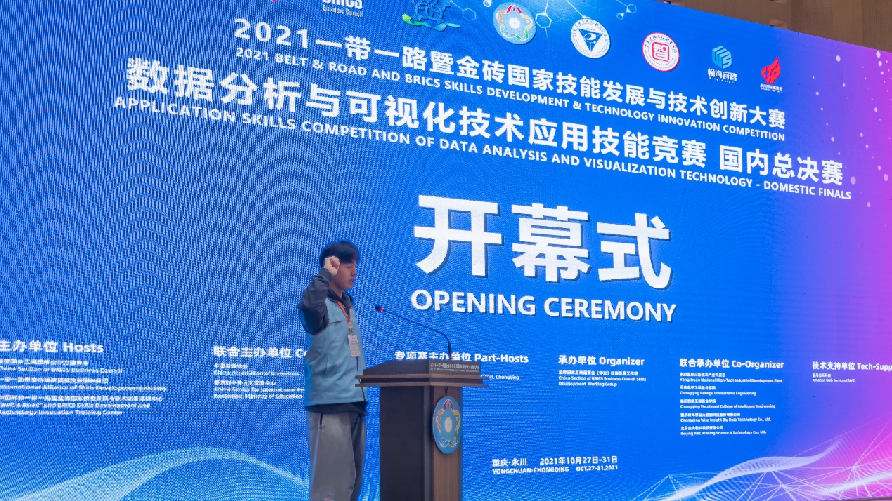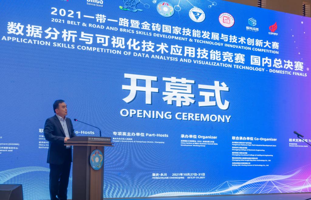 10月28日上午,一带一路暨金砖国家技能大赛数据分析与可视化赛项国内总决赛开幕式在永川高新技术产业开发区举行。本次大赛由永川高新技术产业开发区管理委员会等单位与我校联合承办。来自全国各地共计223名选手参加了开幕仪式。