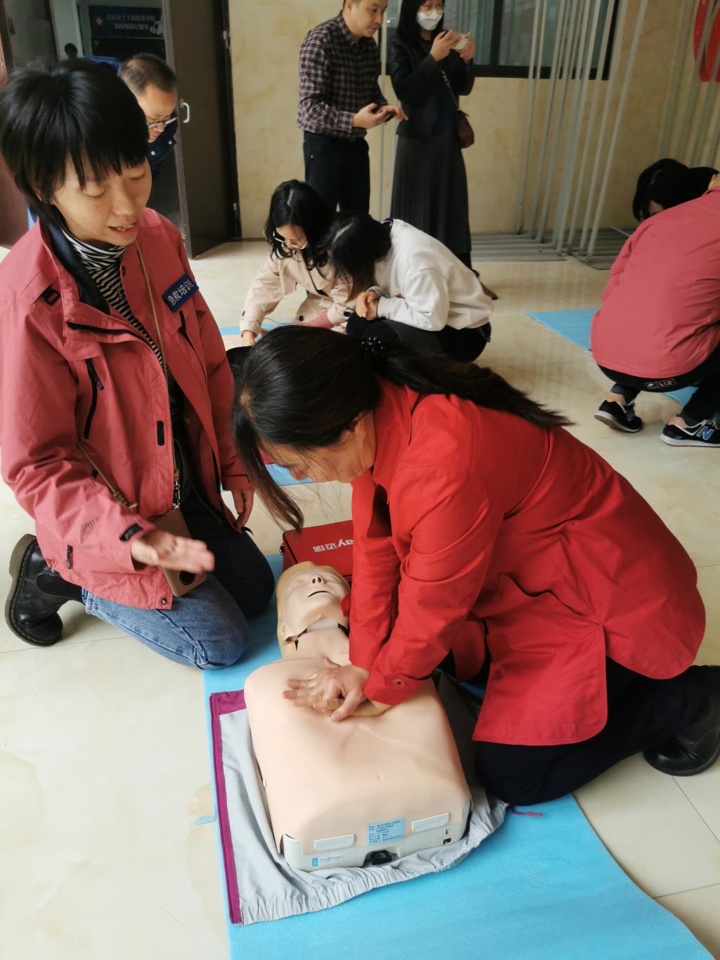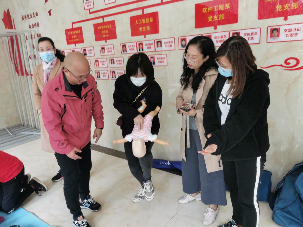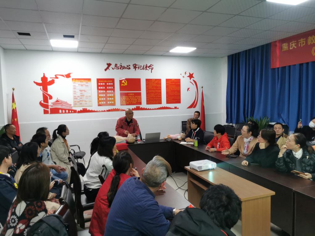 第二期活动主题为《心肺复苏急救技能培训》于10月28日在14-108活动室举行。活动由来自重庆市急救中心急诊医学培训中心费夕丰主任主讲。在一个半小时的讲座中详细讲解了心肺复苏的处理步骤、操作方法及注意事项,以及如何正确使用AED体外除颤仪等内容。费主任的讲解科学严谨,理论联系实际,语言幽默风趣,在场的老师们都认真聆听和记录。最后的实操环节,教职工们摩拳擦掌,在人体模型上一试身手,急救师们在一旁认真示范耐心指导,现场气氛热烈有序。