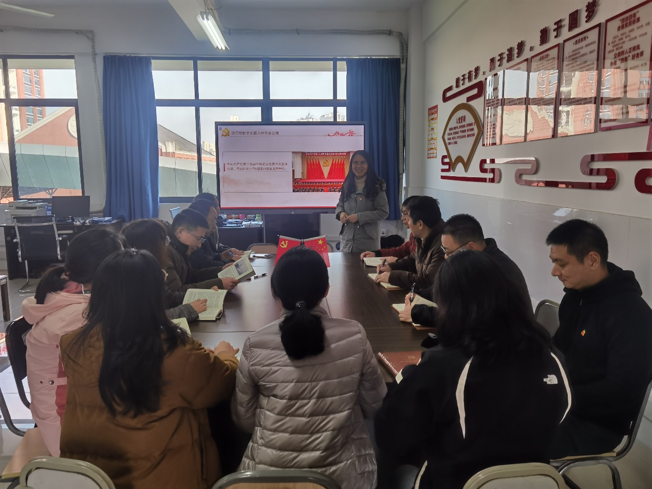 中国共产党第十九届中央委员会第六次全体会议,于2021年11月8日至11日在北京举行。全会审议通过了《中共中央关于党的百年奋斗重大成就和历史经验的决议》,中央委员会总书记习近平作重要讲话。11月12日上午,中共中央举行党的十九届六中全会精神新闻发布会。通信工程学院在教职工政治学习中开展了认真的集体学习和讨论,随后,学院“双带头人“教师党支部书记张慧敏利用教研室会议时间,在全体同志中开展深入的学习研究,大家结合自身实际,热议党的十九届六中全会精神,畅谈学习体会和对实现中华民族伟大复兴中国梦的热切期盼,并对未来的工作进行谋划。