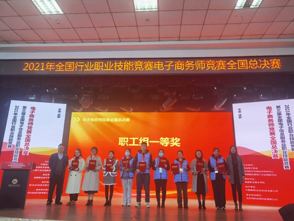 2021年12月4-5日,经人力资源和社会保障部批准,由中国电子商会、中国就业培训技术指导中心、中国国防邮电工会全国委员会共同主办、成都职业技术学院承办、中教畅享(北京)科技有限公司协办的2021年全国行业职业技能竞赛电子商务师竞赛全国总决赛在成都职业技术学院成功举办,共有来自全国各地的92支职工组队伍和127支学生组队伍参加总决赛。