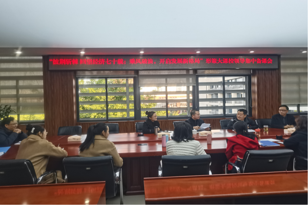 2021年12月2日下午2点。形势与政策教研室2021-2022学年第一学期第三次集中备课会在博德楼三楼会议室召开。学校党委书记孙卫平,党委副书记龚小勇,党委委员、宣传部部长、马克思主义学院院长疏勤,党总支副书记韦代周、副院长冉鑫及形势与政策教研室全体教师共同参与。