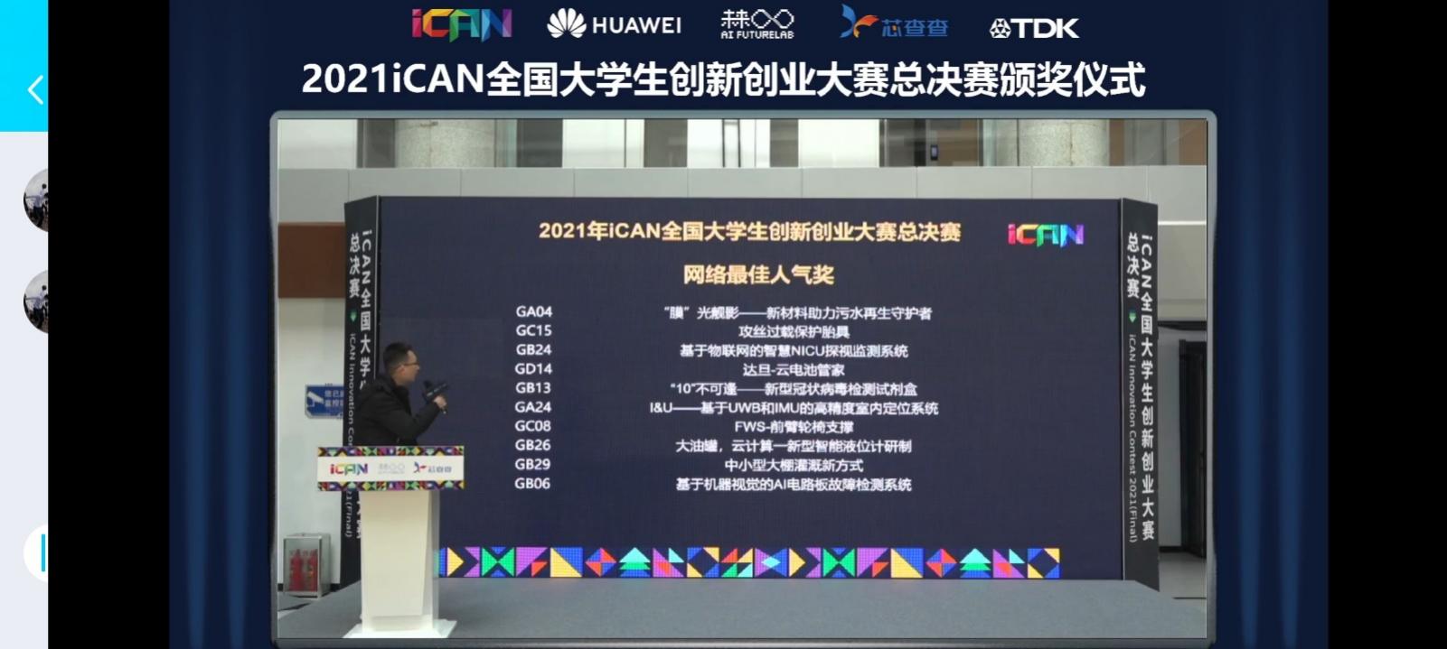 2021年12月11-12日,由中国信息协会主办,山东大学、中国信息协会教育分会、艾肯文化传媒(北京)有限公司、江苏科新智能教育研究院等单位承办的iCAN全国大学生创新创业大赛全国总决赛在山东大学成功举办。本次大赛采取学生线上答辩,评委线下集中评审的方式进行,共有来自全国643所高校、4443个项目以及22134名学生报名参赛。