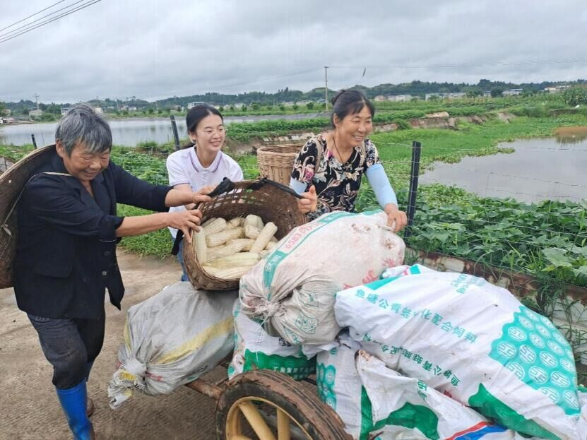 2021年7月19日重庆市潼南区崇龛镇临江村 队员帮助村民搬运农作物