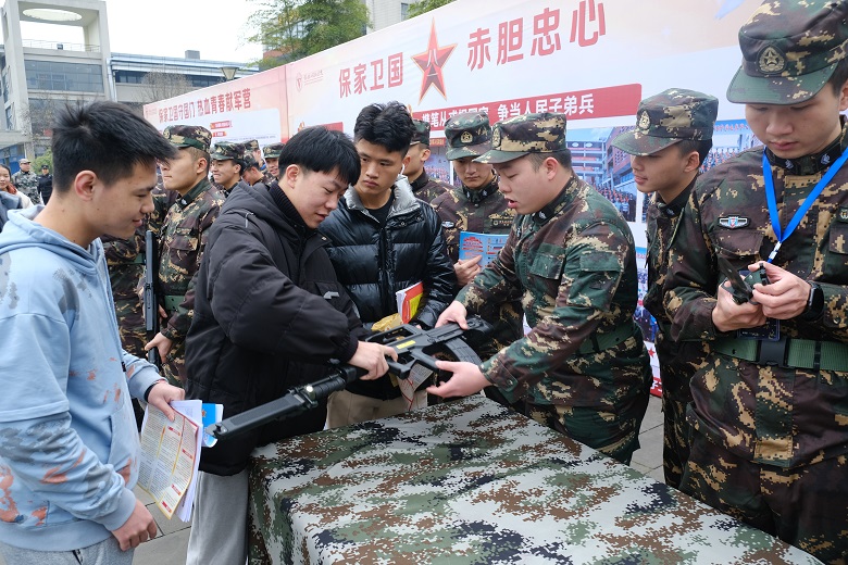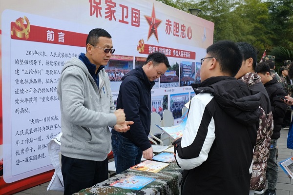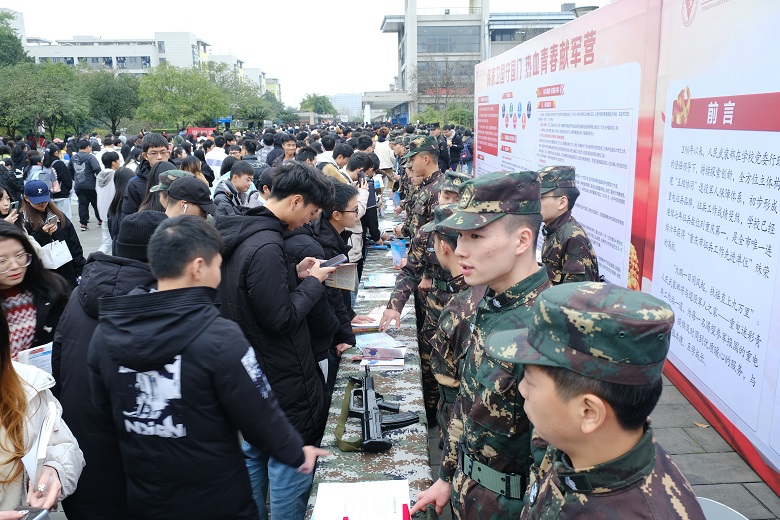 为鼓励在校大学生积极参与应征入伍,增强部队现代化建设,为国家繁荣复兴奠定坚实基础,2021年12月17日上午,重庆电子工程职业学院人民武装部在学子广场举行了以“参军报国,无上光荣”为主题的征兵宣传活动。