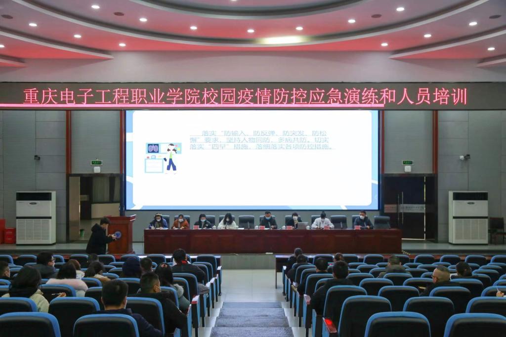 为积极应对校园可能出现的新冠肺炎疫情,根据国务院应对新冠肺炎疫情联防联控机制和市政府、市教委等有关要求,12月31日上午,由我院新冠肺炎疫情防控领导小组组织举办的疫情防控桌面推演应急演练和人员培训在博远厅举行。黄爱明副校长、疾控部门人员、校疫情防控办公室、党政办公室、党委学工部、安全管理处、后勤保障处、大正物业负责人及相关工作人员、各二级学院党总支书记、学管科长、全体辅导员、参加了演练和培训。