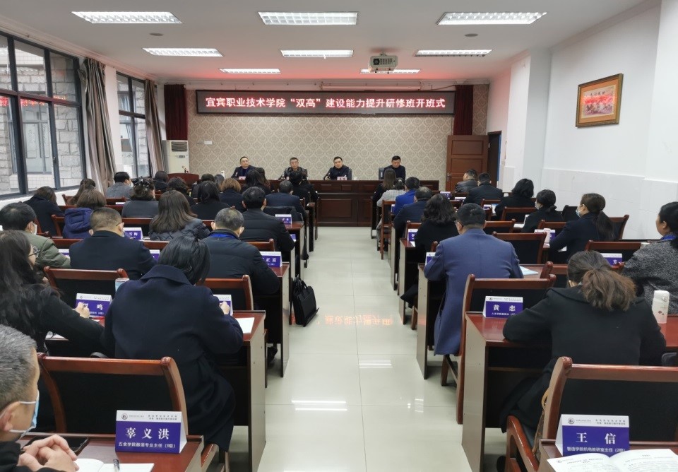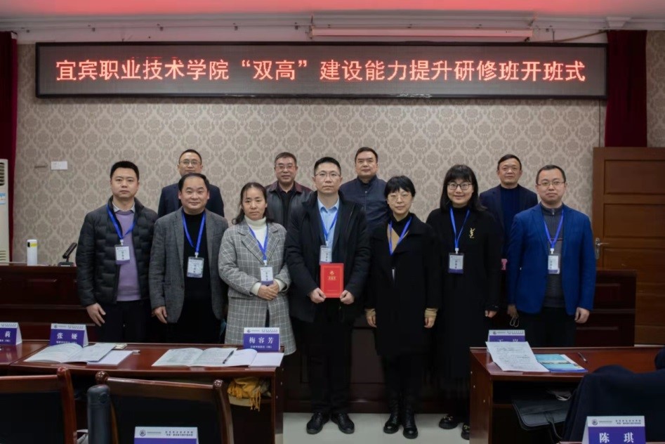 2月17日上午,宜宾职业技术学院“双高”建设能力提升研修班在我校南校区1-101室举行,宜宾职业技术学院党委书记林世全,党委常委、副校长朱涛,我校党委副书记、校长聂强,以及来自宜宾职业技术学院各部门“双高”建设项目相关负责人、各二级学院院长、副院长等47名学员参加开班式。开班式由培训与继续教育中心主任、国培基地办主任莫绍强主持。