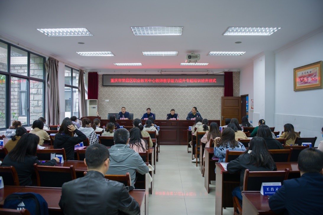 2022年4月16日中午,重庆市荣昌区职业教育中心教师教学能力提升专题培训班在我校南校区1-101室开班。重庆市荣昌区职业教育中心副校长郭建,培训与继续教育中心主任、国培基地办主任莫绍强,培训与继续教育中心综合科科长明伟,以及来自重庆市荣昌区职业教育中心的44名学员参加开班仪式。开班仪式由国培基地办副主任张亚主持。