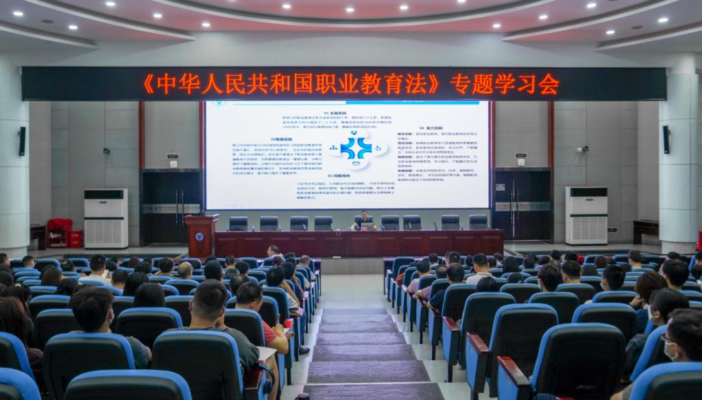 为深入学习贯彻新修订《中华人民共和国职业教育法》,深刻领悟《职业教育法》的精髓要义,进一步深化职业教育改革,推动我校高质量发展。5月25日上午,我校在博远厅组织开展《职业教育法》专题学习会。学校党委副书记、校长聂强教授对新修订的《职业教育法》进行解读与宣讲,全校处科级干部、师生代表200余人参加了专题学习会,会议由党委副书记龚小勇教授主持。