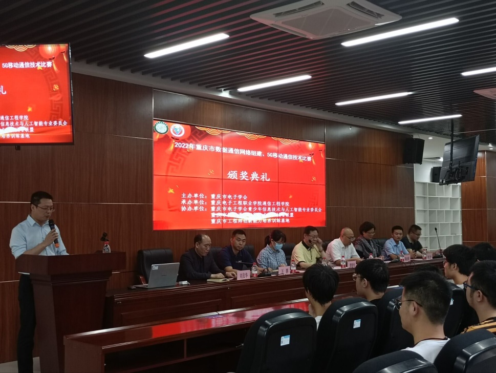 2022年5月24日至26日,由重庆市电子学会主办,重庆电子工程职业学院通信工程学院承办,重庆市电子学会青少年信息技术与人工智能专业委员会、重庆市网络通信工程技术创新战略联盟、重庆市工程师创新能力培养训练基地协办的重庆市5G移动通信技术比赛和数据通信网络组建比赛在我校成功举办。