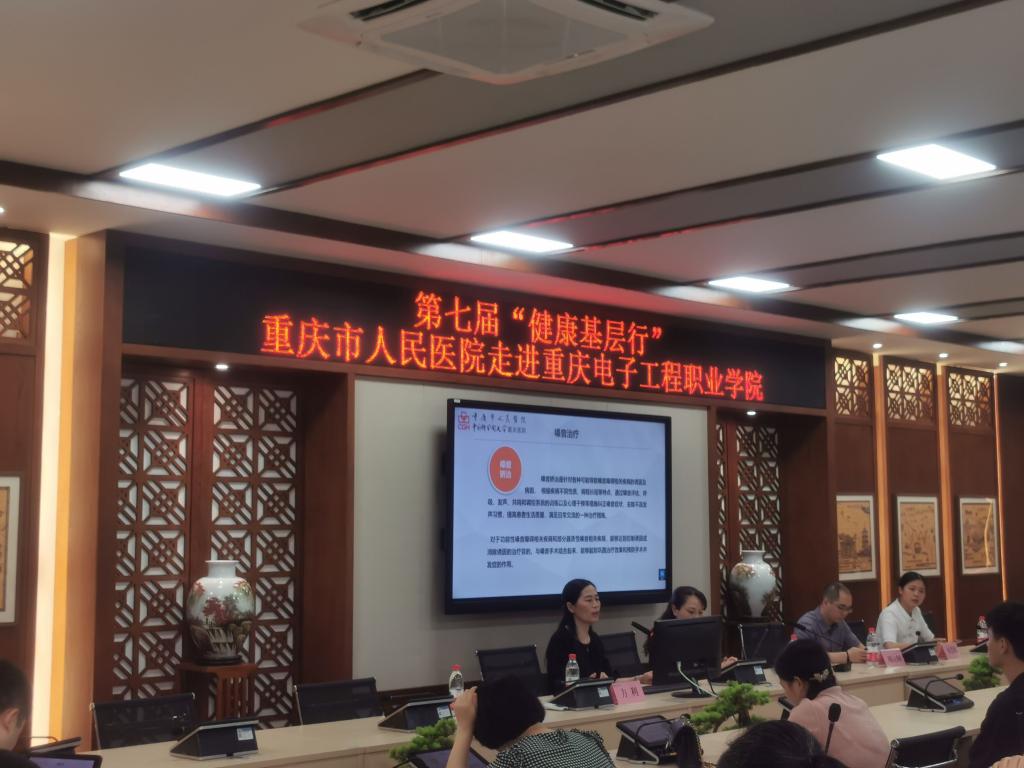 重庆市教科文卫体工会的品牌工作“健康基层行”已经开展了六届,为广泛宣传、有效使用这个健康知识普及平台,把今年第七届“健康基层行”活动开展好,让“健康重电”的理念深入人心,重庆电子工程职业学院工会通过“重电职工之家”公众号,发布本届“健康基层行”活动的所有主题,设计线上投票方式,由全校教职工选择想要了解的主题,根据教职工的需求和投票情况,选择具有普遍性的健康讲座主题,协调活动组,于2022年6月16日在学校开展了重庆市教科文卫体工会第七届健康基层行 “重庆市人民医院走进重电”活动。