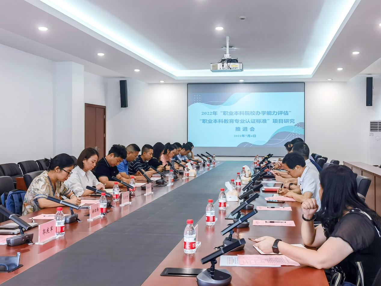 2022年7月4日下午,重庆市教育评估研究会职业教育与成人教育评估专业委员会在重庆建筑工程职业学院厚德楼2-601会议室召开2022年“职业本科院校办学能力评估”“职业本科教育专业认证标准”项目研究推进会。重庆电子工程职业学院党委书记、重庆市教育评估研究会职业教育与成人教育评估专业委员会理事长孙卫平教授,重庆建筑工程职业学院校长吴国雄教授出席会议,重庆电子工程职业学院、重庆工贸职业技术学院、重庆建筑工程职业学院、重庆青年职业技术学院、重庆五一职业技术学院、重庆工业职业技术学院、重庆三峡医药高等专科学校、重庆财经职业学院、重庆女子高级职业中学等项目研究理事单位的领导及责任部门负责人共计23人参会。会议由重庆建筑工程职业学院副校长刘幼昕教授主持。