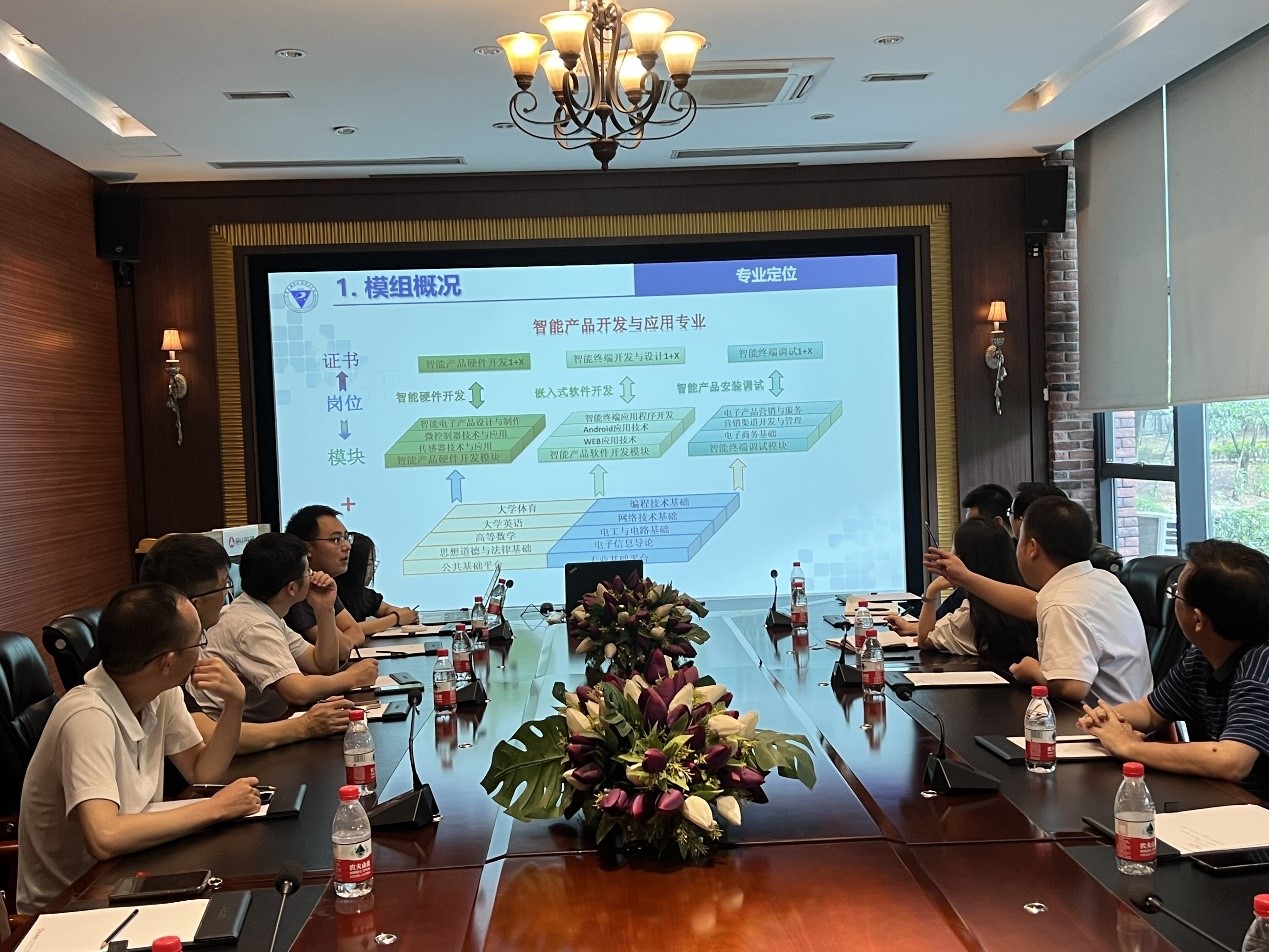 校企合作协同育人是企业发挥情怀、助教助学、共同培养企业未来员工的方式之一。作为企业,金山科技秉持“产教融合,校企合作,资源共享,协同发展”理念,发挥产业优势,对专业发展给予指导和技术帮扶,参与相关专业人才培养方案的拟定与调整、专业课程的开设、学生实习实践等。我院党员教师通过参观企业发展历史了解企业运营模式,进入企业研发中心了解行业前沿技术,深入生产一线感受员工工作状况,对企业员工岗位设置、技能素质要求、人才梯队培养都有了较为全面的认识。根据行业企业的实际情况,金山科技科研发展中心总监、技术平台部经理、科研发展经理、工程师等管理人员和工程师对人才培养定位,专业课程设置,人才的可持续发展等方面为智能产品开发与应用专业和应用电子技术专业的人才培养方案建设做了细致的指导,同时也赞同学校为高端技术技能人才的培养做出的新尝试。