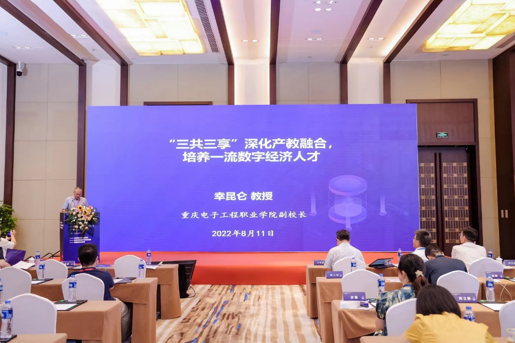 在主题报告环节,幸昆仑教授详细分享了交叉融合型数字经济人才培养的重电探索与实践。学校坚持“产教融合重深度、人才培养落实处”理念,与行业头部企业及产业链上企业深度合作,十年积淀形成“三共三享”校企协同育人理念。基于“三共三享”,一是校企共同构建“2平台+3模块”专业群课程体系,确保底层共享、中层融通、上层互选;二是校企共建共享卓越师资团队、高水平产教融合实训基地,搭建起技能训练、职业认证、培训服务和技术创新四类平台,促进科技成果转化应用和数字产业升级;三是实施卓越人才试点班、工匠工坊等卓越计划和“六个结合”工程实践能力培养模式,培养学生解决实际问题的综合应用能力和创新意识;四是培养重电精英学子服务中国企业“走出去”,开展巴基斯坦、丝路项目等海外高级研修培训,扩大中国数字经济战略在“一带一路”沿线国家的影响和发展。