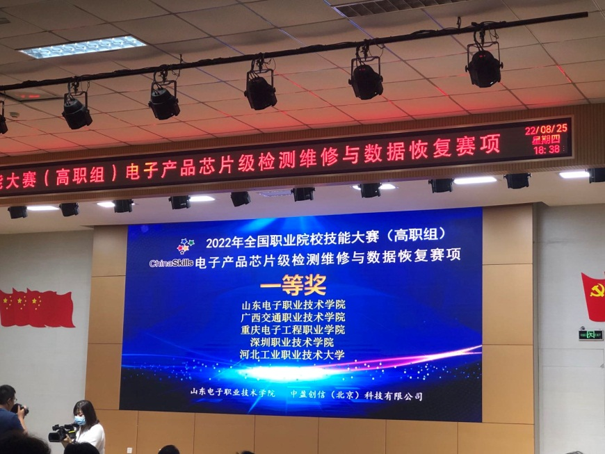 8月26日,2022年全国职业院校技能大赛“电子产品芯片级检测维修与数据恢复”赛项(高职组)在山东电子信息职业学院章丘校区顺利结束,经过4天激烈的角逐,我校人工智能与大数据学院竞赛团队从全国51支参赛队伍中脱颖而出,荣获全国一等奖。
