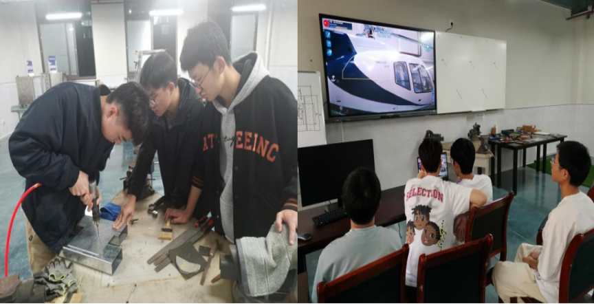比赛要求两名选手自由分工完成操作,竞赛内容包括两个模块:模块A 直升机日常检查、模块 B 航空发动机维护。涵盖飞机维修技术资料查询、飞机零部件拆装、软/硬管路施工、故障排查与处理等内容,综合考查参赛选手飞机维修基础技能水平。飞行器维修技术是我院2021年新开设专业,诸多教学软硬件设施均处于建设状态,特别是与竞赛相关的设施设备较为缺乏。