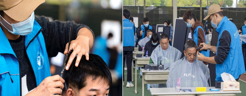 为解决在校师生的理发难题,由学生公寓特设党支部精心策划,2022年11月15日下午,在重庆电子工程职业学院北校区,一间由辅导员、退役大学生和志愿者自发组成的“爱心义剪”服务点正式营业,成为校园封闭管理期间解决师生剪头“刚需”的爱心驿站。