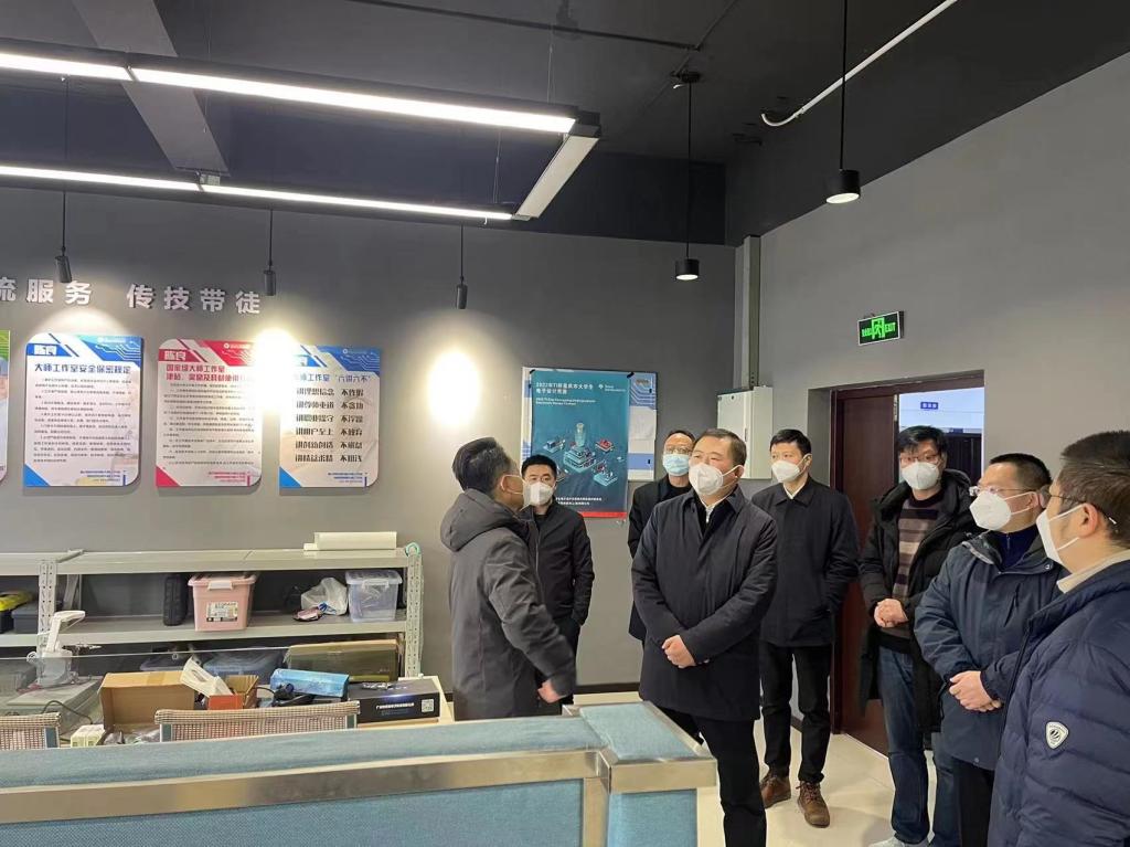 李电县长一行参观了学员培训室、技术技能创新室和成果展览室,听取了工作室的工作机制和主要举措,及工作室在高技能人才培养、技术攻关、社会服务所取得的成果,了解了教练和学员的工作现状等。
