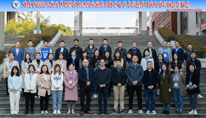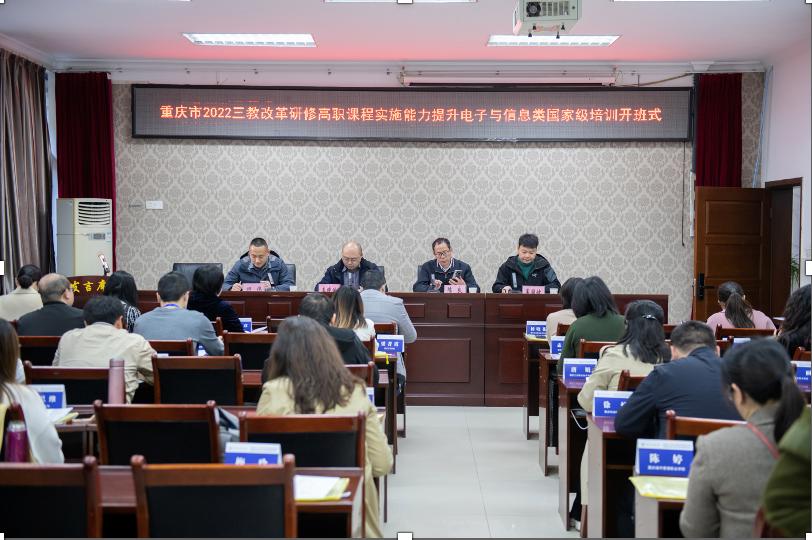 3月14日,重庆市2022年三教改革研修高职课程实施能力提升电子与信息类国家级培训在我校南校区1-101室开班,培训与继续教育学院副院长李晓斌,培训与继续教育学院综合科科长明伟,电子与物联网学院院长陈良、电子与物联网学院工程中心主任易国键,以及来自重庆市各大高职院校的40名学员参加开班式。