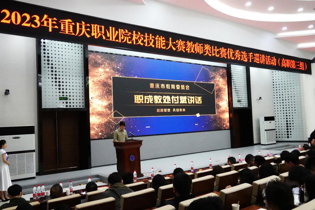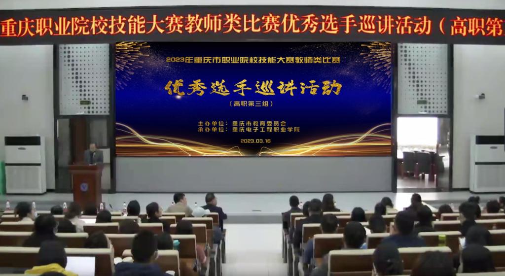为发挥全国职业院校技能大赛教师类比赛优秀选手的示范引领作用,进一步推动职业教育课堂教学改革,整体提升全市职业院校教师教学能力、信息素养、教学设计水平,重庆市职业院校技能大赛教师类比赛优秀选手巡讲活动(高职第三组)于2023年3月16日在重庆电子工程职业学院成功举行。重庆市教育委员会干部付斌、重庆市教育科学研究院教研员付勇、重庆电子工程职业学院党委副书记龚小勇以及市内27所高职院校的教师代表参加了活动,巡讲活动由重庆电子工程职业学院教务处处长童世华主持。