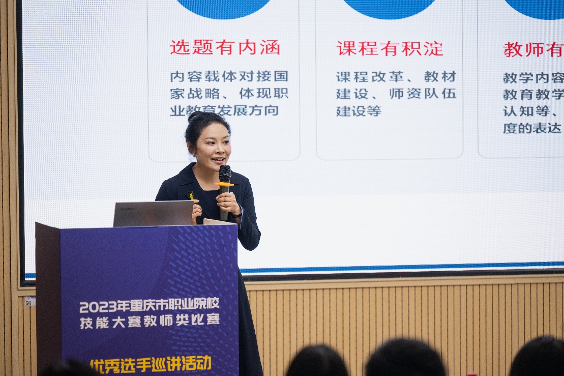此次优秀选手巡讲活动为全市职业院校教师搭建了一个相互交流的平台,让教师们对教学能力比赛的内涵有了更全面、更深入、更充分的认识,进一步激发了教师参与教学能力比赛和教学改革的积极性,对全面提升教师的教育教学能力和人才培养质量起到了积极的促进作用。