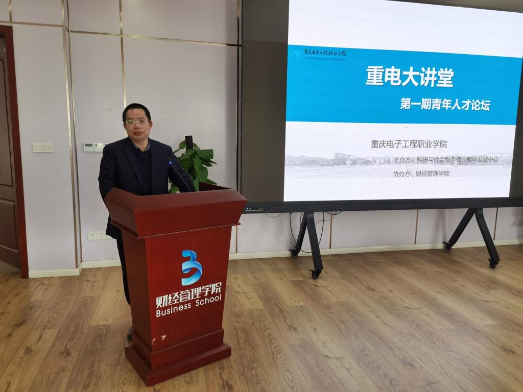 党的二十大报告指出“实施科教兴国战略,强化现代化建设人才支撑”,为搭建学校青年人才创新创意的跨学科、跨专业交流平台,打通青年人才引进、培养、激励、产出的全链条。3月30日下午,由科研与社会服务处、人力资源处教师发展中心主办,财经管理学院承办的“重电大讲堂”2023年第一期青年人才发展论坛顺利举行。校党委副书记龚小勇、教师发展中心负责人廖世萍、科研与社会服务处副处长黄睿、马克思主义学院副院长冉鑫,科研处相关老师、财经管理学院、智慧健康学院、通识教育与国际学院等青年科研骨干等三十余人参加本次论坛。